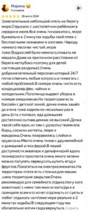 Чистые просторные и уютные номера, оборудованные всем необходимым для прекрасного пребывания, вкусные домашние блюда, удобная транспортная инфраструктура, и, конечно, внимательный и отзывчивый персонал – все это создает доброжелательную атмосферу и оставляет самые приятные впечатления от безмятежного отдыха.